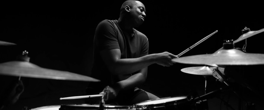 Her kan du se én av Drumeos instruktører, den virtuose trommeslageren Larnell Lewis, vise deg sin arbeidsprosess når han skal innstudere en ny låt på kort tid.